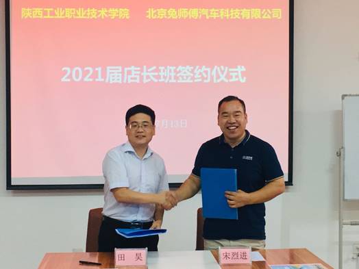田昊副书记与北京兔师傅汽车科技有限公司总经理宋烈进代表校企双方签订订单