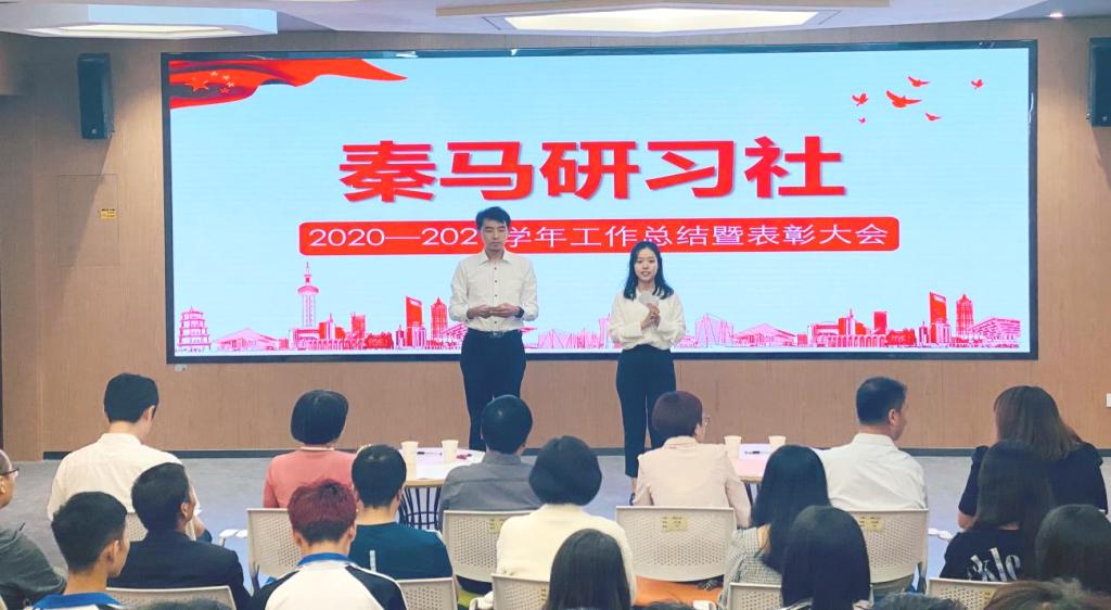 6月17日下午,马院“秦马研习社”2020—2021学年工作成果汇报暨总结表彰大会在智创思政工坊举行,学校党委副书记田昊、学生处副处长耿丽、马克思主义学院院长王金辉、副院长王辉、部门全体教师以及社团全体同学参加了本次大会。