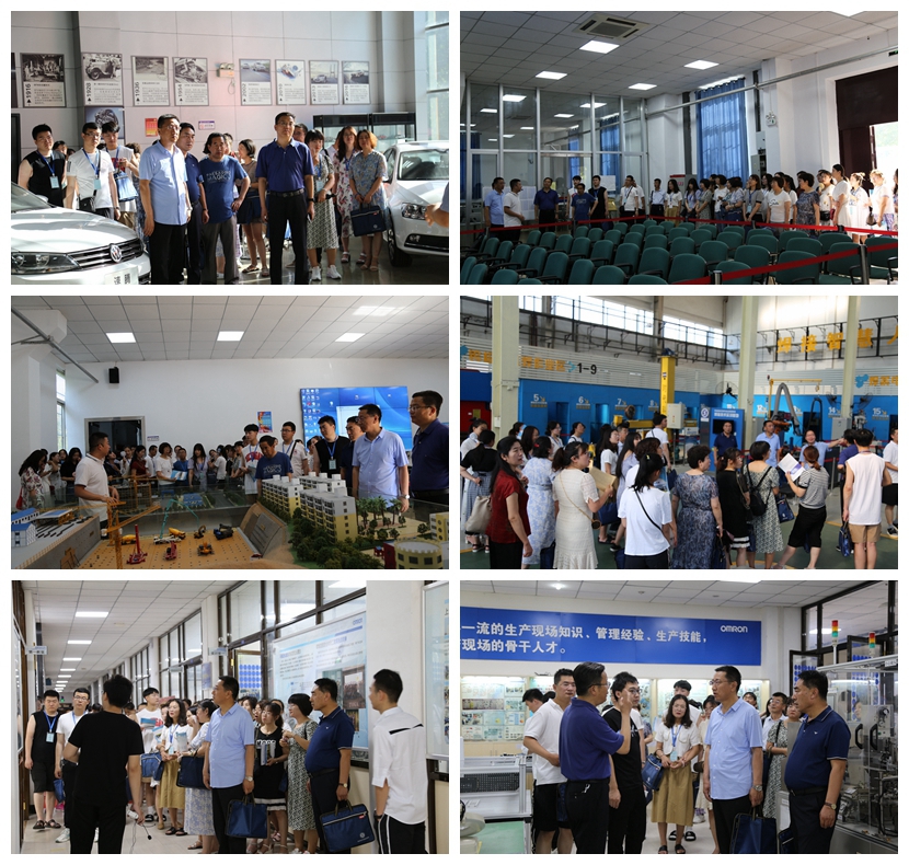 开班典礼前,参训教师实地参观了学院的汽车实训基地、土木工程实训基地、焊接实训基地、欧姆龙实训中心、化工实训基地等实训场所,并与教师进行了亲切交流。