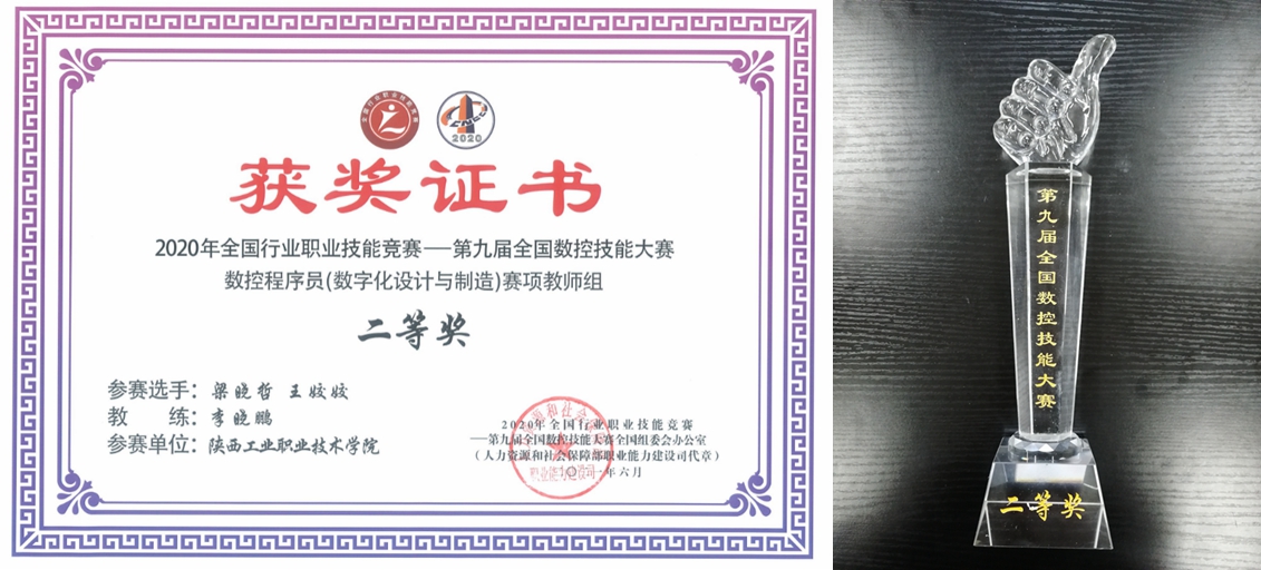 近日,由人力资源社会保障部、教育部、科技部、全国总工会、机械工业联合会等五部委联合共同举办的第九届全国数控技能大赛下发了获奖证书,我校航空工程学院教师梁晓哲、王姣姣获全国总决赛团体二等奖1项。航空工程学院师生在陕西省赛区中获一等奖2项,二等奖2项,三等奖2项,我校获得全国优秀组织奖、陕西省突出贡献单位奖。