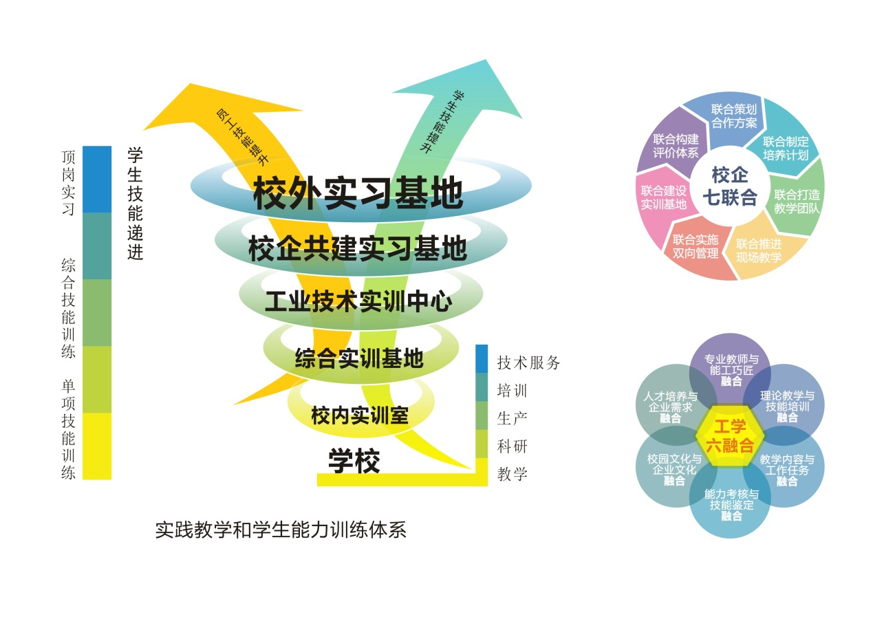 教育教学综合改革持续深化,标志性成果取得重要突破。学院紧紧围绕陕西支柱产业-现代装备制造业对高级技术技能人才的需求,瞄准学生未来职业生涯的成才目标开展人才培养。充分依托牵头组建的“全国机械行业材料成型与控制技术职教集团”及“陕西装备制造业职教集团”,携手560余家知名企业,确立了“工学六融合”和“校企七联合”人才培养模式;积极开展“1+X”证书制度试点和现代学徒制试点;落实国家“百万扩招”,实行弹性学制。