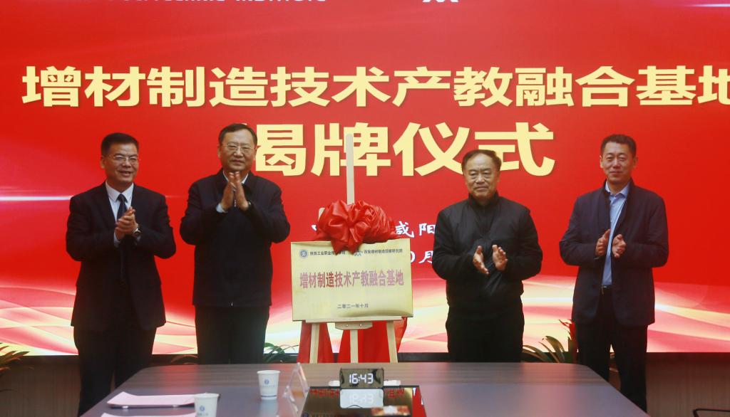 卢秉恒院士、高巍巡视、刘永亮校长、西安增材制造国家研究院有限公司杨锋为增材制造技术产教融合基地揭牌