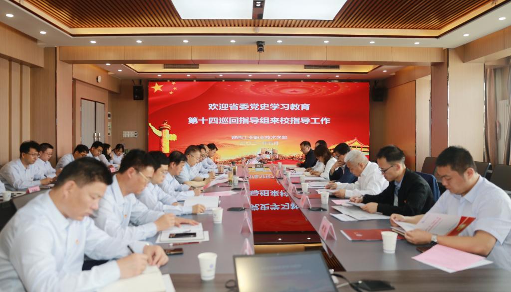 工作汇报会上,刘江南组长首先对本次巡查指导的工作职责、任务进行了说明,他表示,陕西工业职业技术学院具有深厚的历史积淀和内涵,在陕西乃至全国的高职教育中发挥着引领示范作用,为全省职教发展提供了“陕工方案”与“陕工样板”。省委党史学习教育第十四巡回指导组以“学习、宣传、落实、推进”为工作理念,希望通过入校深入调研,学习全省不同高校的优秀理念,对各高校的典型经验和成功案例进行推广宣传,督促党史学习教育在高教领域落实落细,进而达到推动学校各项事业高质量发展的目标。